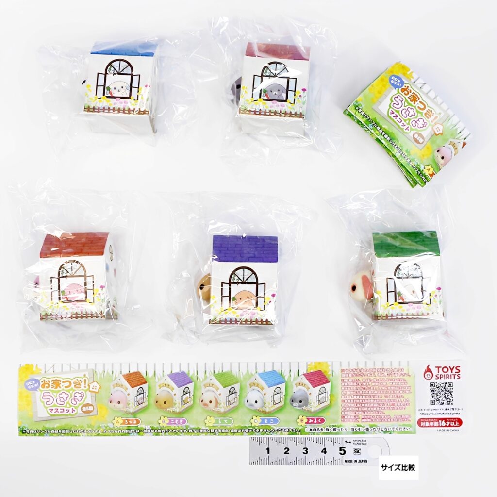 うさぎたちは柔らかい素材で癒やし効果抜群。カラフルで可愛いお家がセットになっており、飾っても取り出しても楽しめます。約4.7cmの手のひらサイズで、全種集めたくなること間違いなしの逸品です。