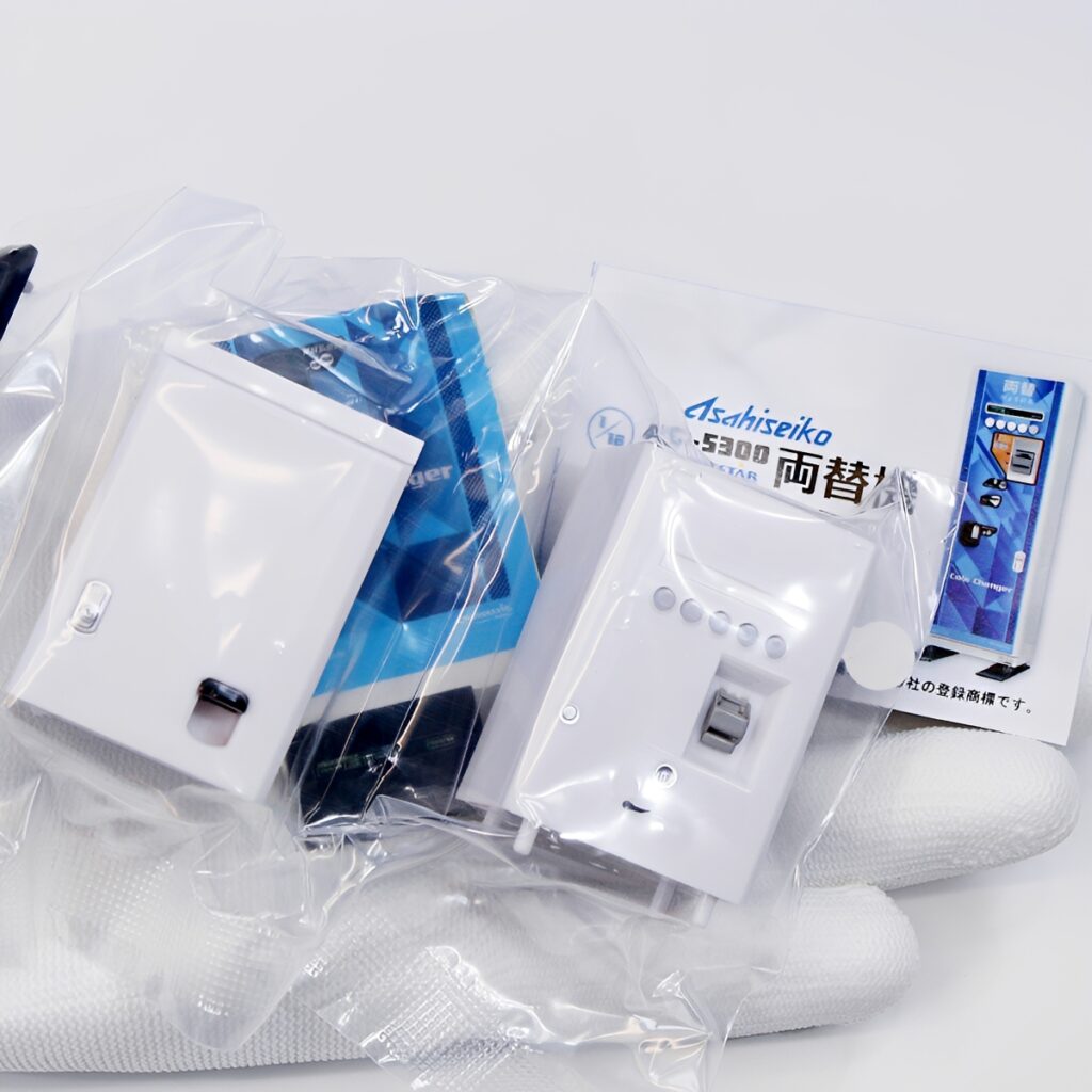 業務用機器メーカー、旭精工の定番両替機「AC-5300」が1/18スケールの精密ミニチュアで登場。