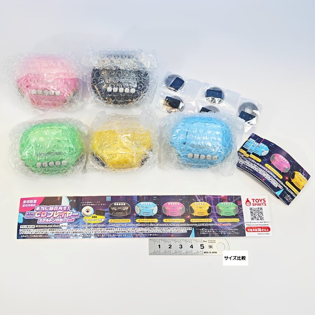 全長約6cmのミニサイズながら、実際に録音と再生ができる超本格仕様です。CD・カセットの出し入れやハンドルの可動など、細部までこだわり抜かれた仕掛けが満載。全5種のラインナップで、飾るだけでなく実際に「遊べる」進化系カプセルトイです。