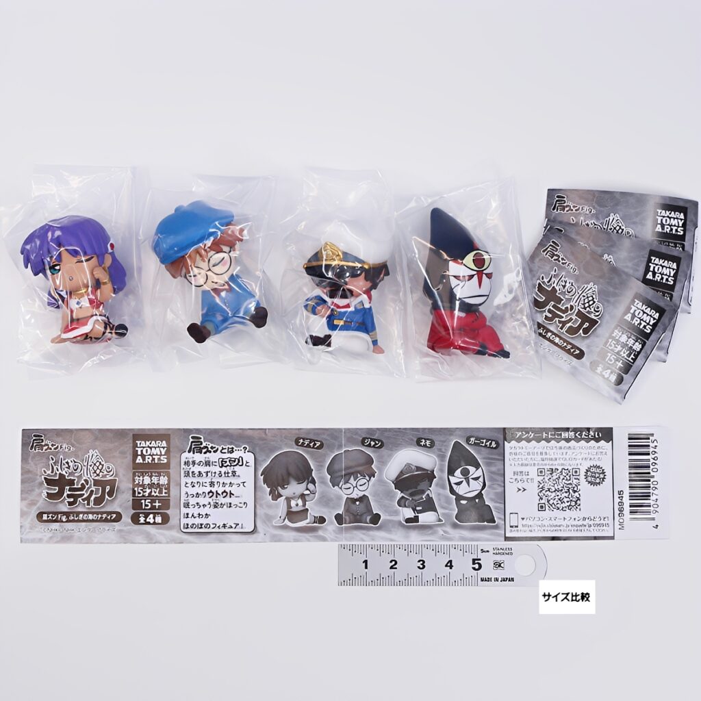 ナディア、ジャン、ネモ、ガーゴイルの4人が、隣の肩に「ズン」と頭をもたれて眠る愛らしい姿で立体化されました。全高約43~57mmのちょうどいい手のひらサイズで、デスク周りの癒やしやコレクションに最適です。