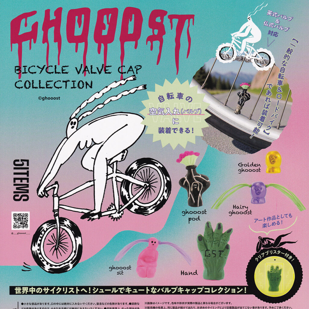 世界中のサイクリストへ!アーティスト「ghooost」によるシュールでキュートなバイシクルバルブキャップが、カプセルトイで新登場です。