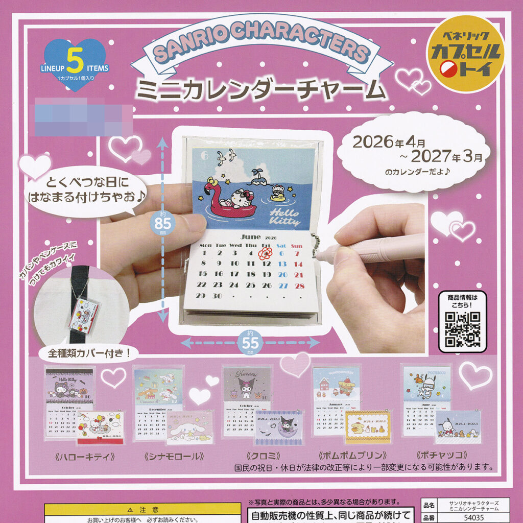 サンリオの人気キャラクターたちが、持ち歩ける「ミニカレンダーチャーム」になってカプセルトイに新登場です。