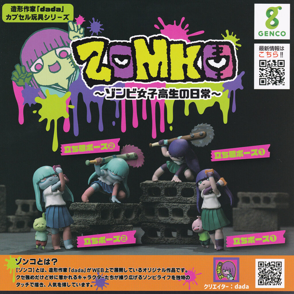 造形作家「dada」氏が描く、クセが強くも愛らしい『ZOMKO ゾンビ女子高生の日常』がカプセルトイで新登場です。