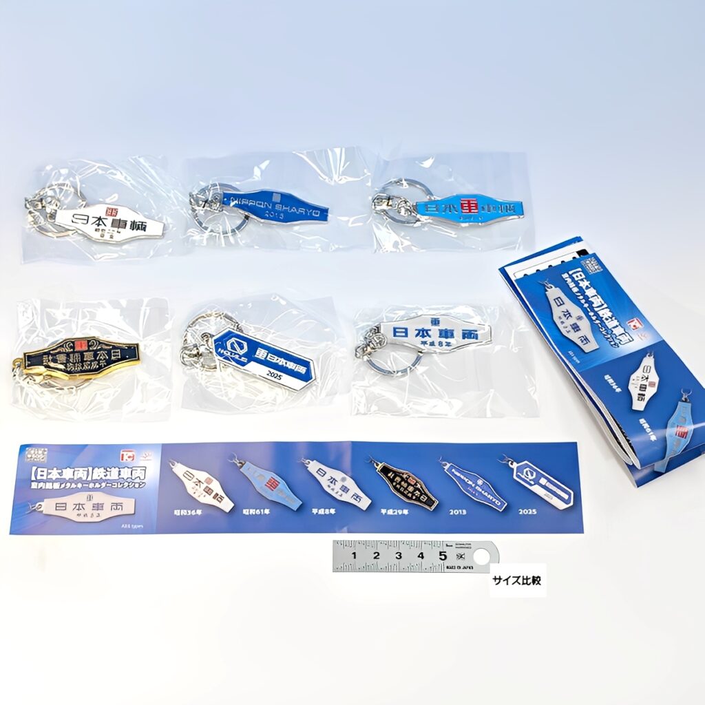 鉄道ファン垂涎の銘板を、重厚感あるメタル素材で再現した逸品「日本車両 鉄道車両室内銘板メタルキーホルダー」がカプセルトイで新登場!