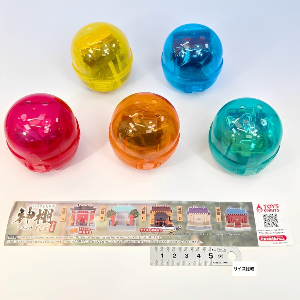 約4cmの手のひらサイズながら、ドアの開閉ギミックや賽銭箱、ガラポン機能、絵馬など細部までこだわり抜いた作りです。デスクや棚に飾れば、そこがあなただけのパワースポットに。日常に癒やしと彩りを添える逸品です。