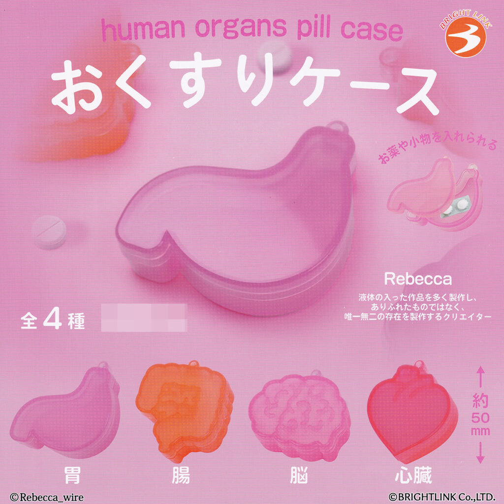 液体の入った作品を中心に制作するクリエイター「Rebecca」とブライトリンクがコラボレーションした、シュールでスタイリッシュな「おくすりケース human organs pill case」がカプセルトイで新登場です。