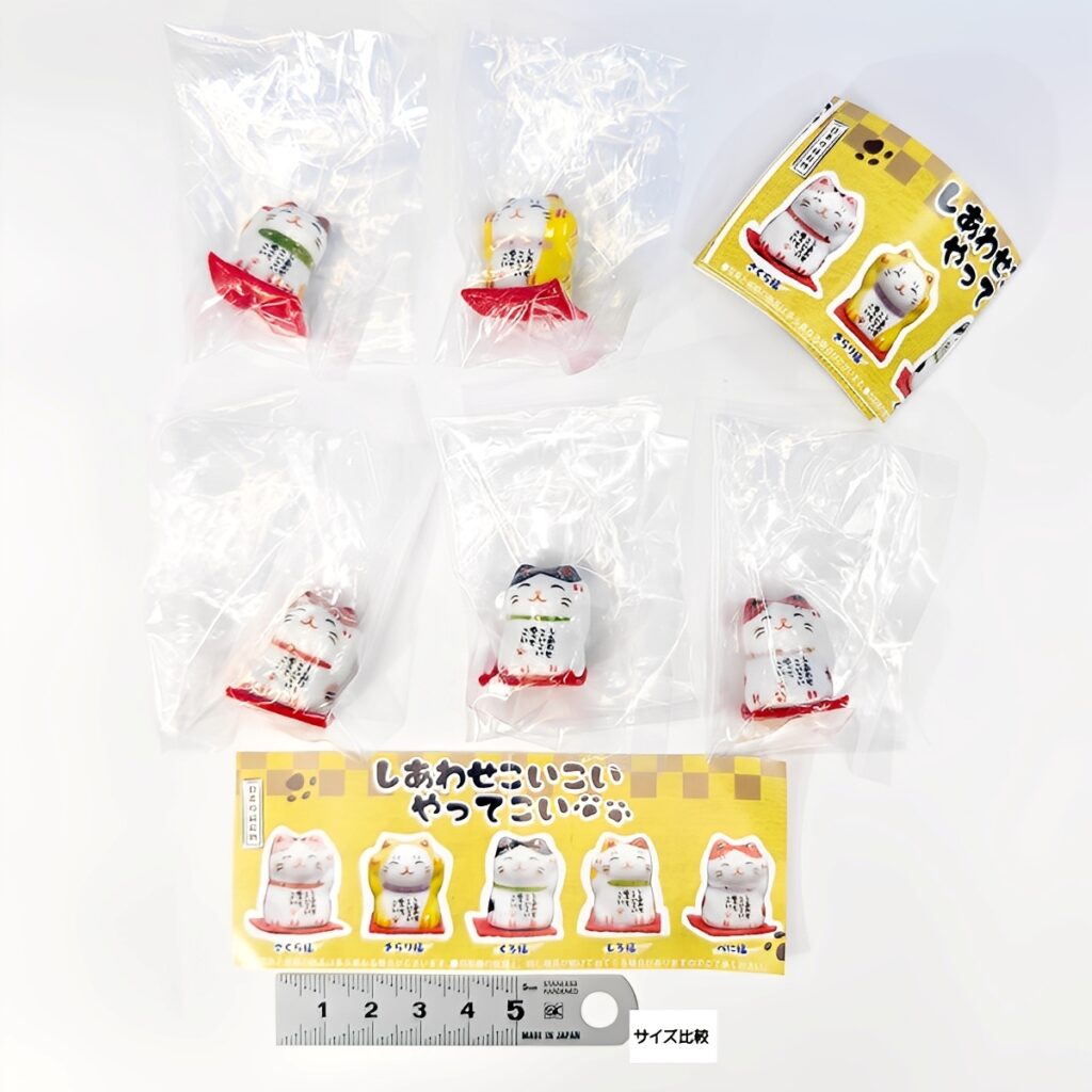 しあわせこいこいやってこい ぶんぶん 【全5種セット(フルコンプ)】 日本の縁起物 福を招く 猫 招き猫 動物グッズ レジンフィギュア ガチャガチャ カプセルトイの写真付きフォトレビュー紹介です。