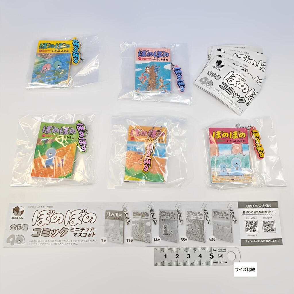 全長約5.5cmの集めやすいサイズ感で、全種にボールチェーンと可愛いロゴラバーマスコットが付いています。カプセルトイならではの豆本風の精巧な作りで、デスクや棚に飾るだけで癒やしの空間を演出してくれます。