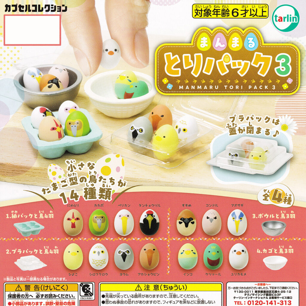 大人気シリーズ第3弾「まんまるとりパック3」が登場!たまご型のフォルムが愛らしい鳥たちと、紙パックやボウルなどの容器がセットになったカプセルトイが新登場です。