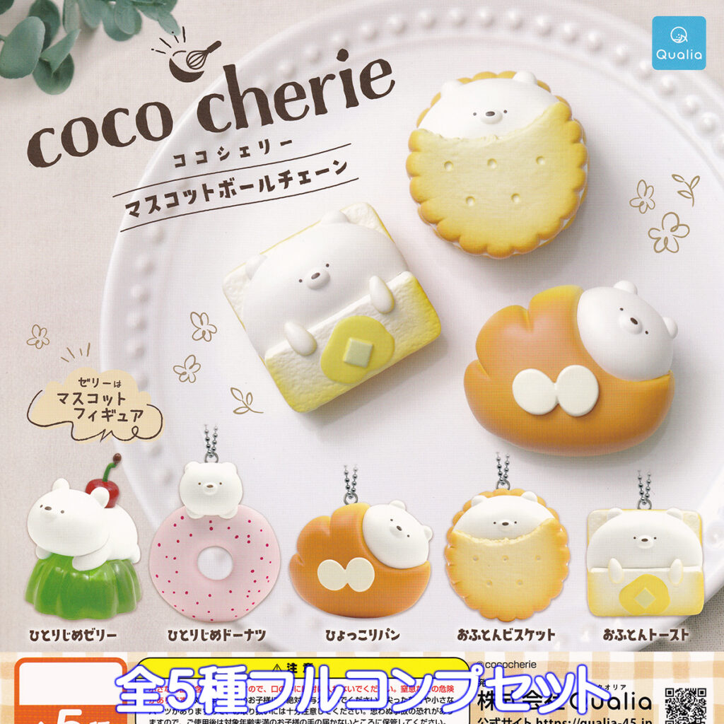coco cherieさんの可愛いくまさんのオリジナルキャラクターがパンやお菓子と融合した癒し系マスコット「ココシェリー マスコットボールチェーン」がカプセルトイで新登場です。