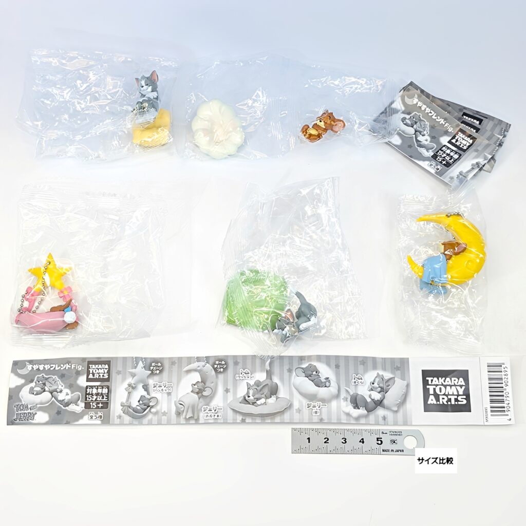 仲良く眠る姿や枕・雲の上でくつろぐ様子、さらに三日月に揺られるジェリーなど、見ているだけで心が和む、癒やしの空間を演出できる豪華仕様のフィギュアセットです。