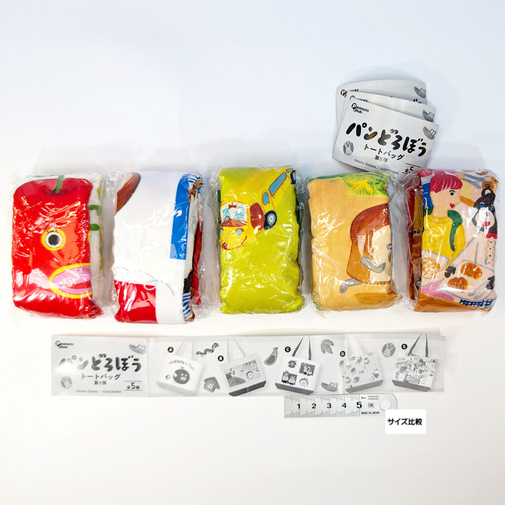パンどろぼう トートバッグ 第5弾 ピーナッツ・クラブ 【全5種フルコンプセット】 Keiko Shibata Pan Dorobo TOTEBAG Ver.5 グッズ 手提げ袋 ガチャガチャ カプセルトイの写真付きフォトレビュー紹介です。