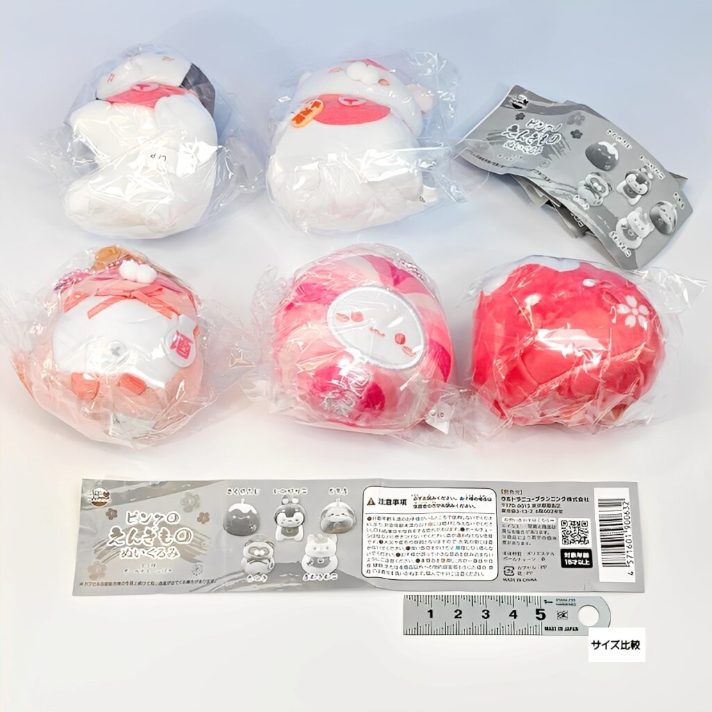 ころんと丸いフォルムが愛らしい縁起物「ピンクのえんぎものぬいぐるみ」が、カプセルトイに新登場です。