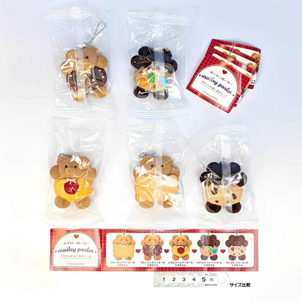 約5cmの手のひらに乗るちょうど良いサイズで、全種類にボールチェーンが付いています。カバンやポーチにつけて楽しめる、とっておきの可愛いおすすめアイテムです。