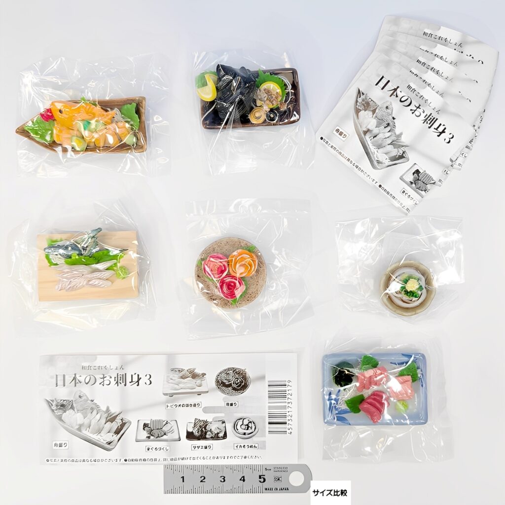 日本の食卓を彩る繊細なミニチュアで再現した人気シリーズ「和食これくしょん」第3弾。豪華な刺身の世界がカプセルトイで新登場です。