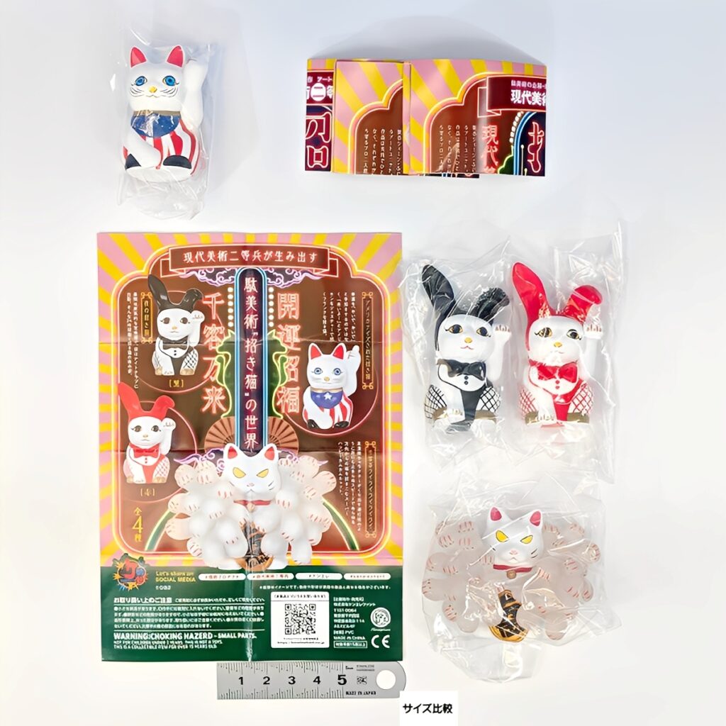 約6cmのちょうど良い手のひらサイズで、脱力的な進化を遂げた個性的な招き猫たちが、あなたに福を招きます。ぜひそのユニークな世界観をお楽しみください。