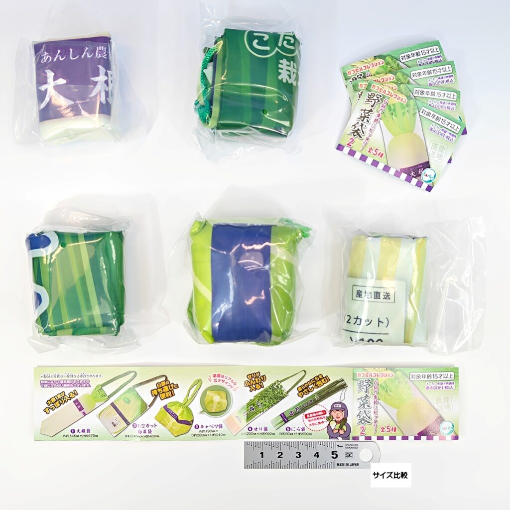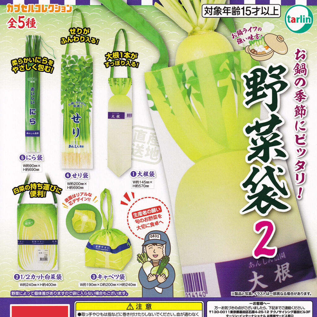 大根や白菜、キャベツがジャストフィットする専用エコバッグに加え、新ラインナップの「せり」や「にら」袋も仲間入り。お買い物や料理がもっと楽しくなる、遊び心満載のアイテムです。