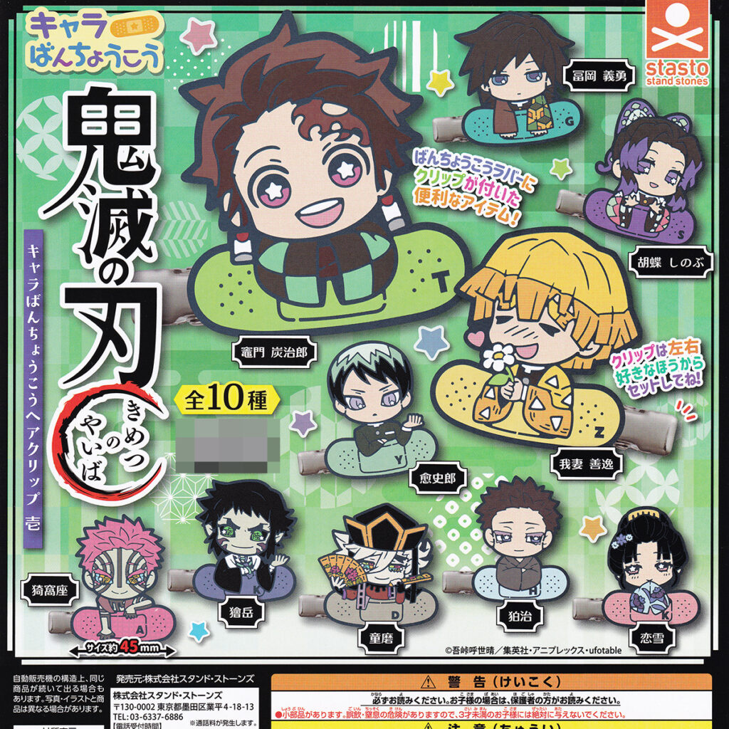 炭治郎や善逸、義勇といった人気キャラクターに加え、童磨や猗窩座もラインナップ。左右どちらからでも留められる便利な仕様で、デスクワークや洗顔時のアクセントに最適です。躍動感あふれるデフォルメ姿を、ぜひお手元に!