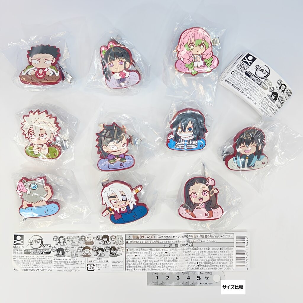炭治郎や善逸、義勇といった人気キャラクターに加え、童磨や猗窩座もラインナップ。左右どちらからでも留められる便利な仕様で、デスクワークや洗顔時のアクセントに最適です。躍動感あふれるデフォルメ姿を、ぜひお手元に!