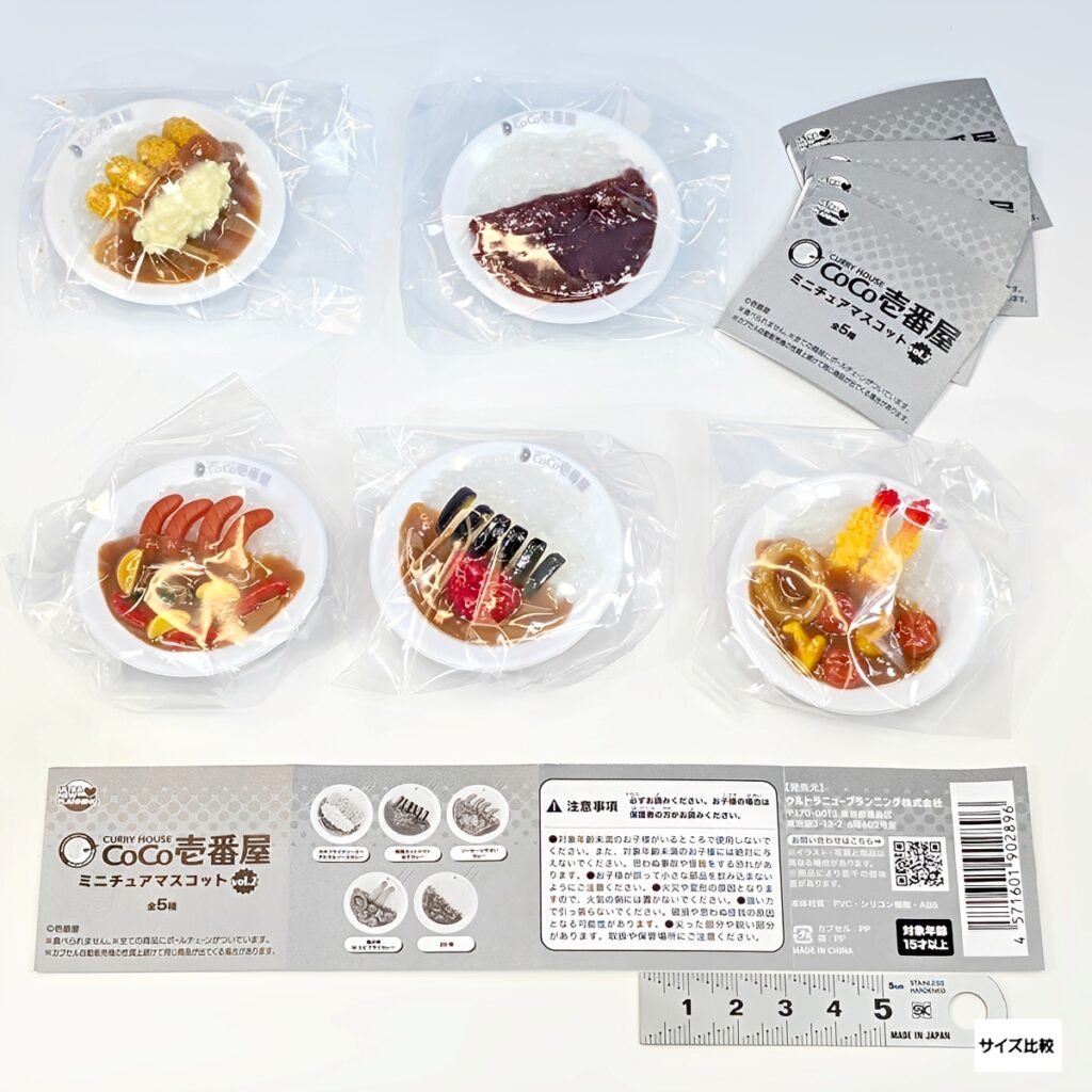 全長約5.5cmの絶妙なサイズ感で、全種ボールチェーン付き。どこでもココイチ気分を楽しめる豪華仕様です!